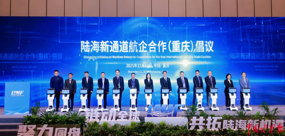 11月12日,由西部陆海新通道物流和运营组织中心、陆海新通道运营有限公司、上海国际航运研究中心联合主办的2025陆海新通道航商大会在重庆科学会堂举行,全球航运、港口、金融、制造及供应链领域约230位嘉宾参会,是内陆地区首次举办聚焦陆海新通道航运端的盛会。